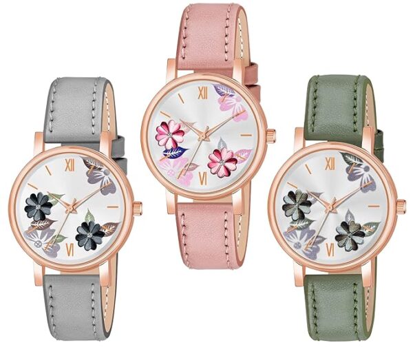 Color Flowered Dial Watch for Womens and Girls Combo Watches for Girl Pack of 3